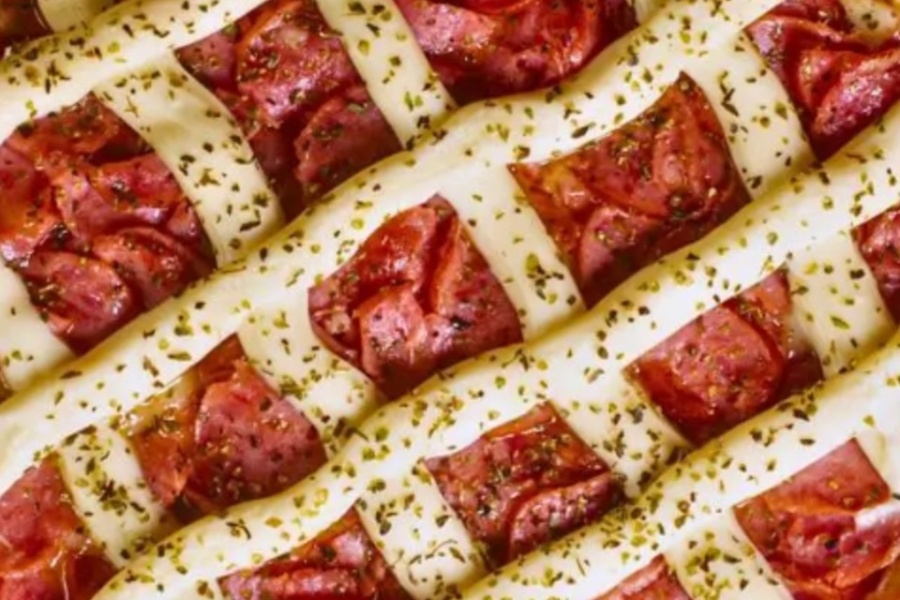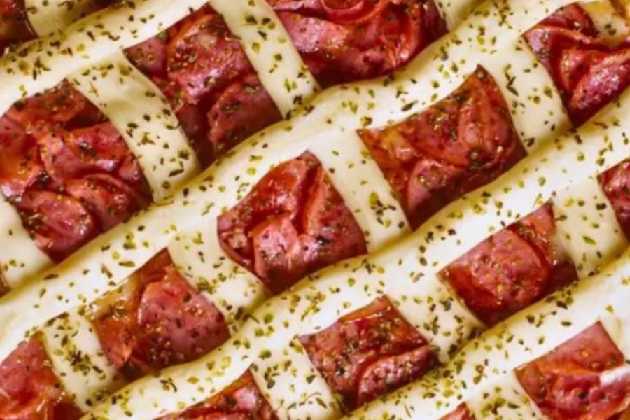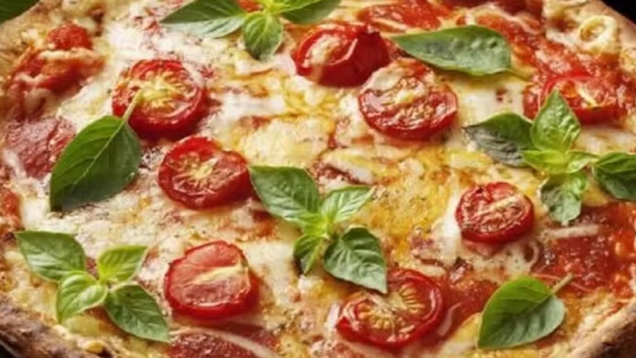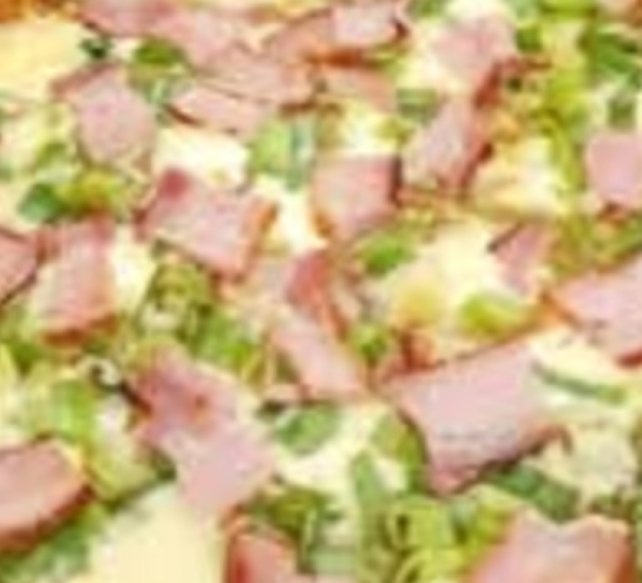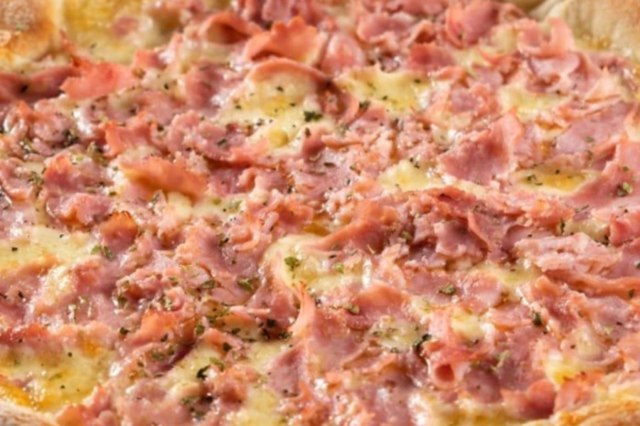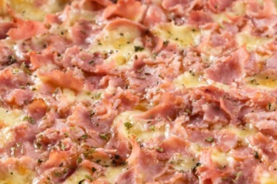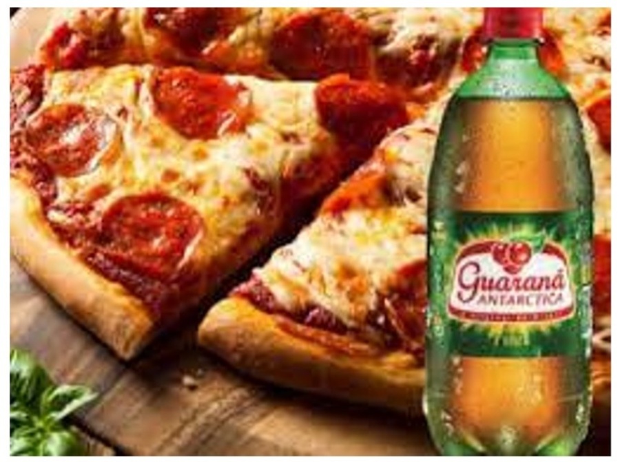 molho especial, muçarela, presunto, calabresa, tomate, cebola, pimentão, milho, ervilha, azeitona, ovo e oréganoPastel frito + Guaravita