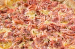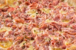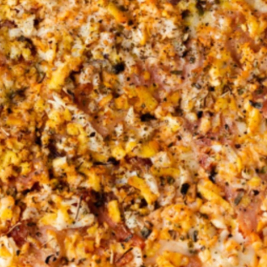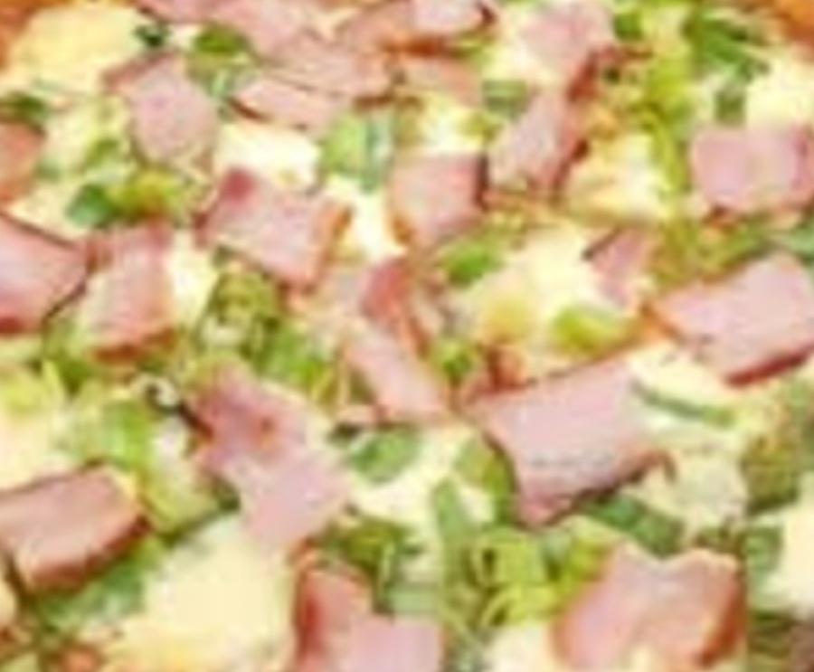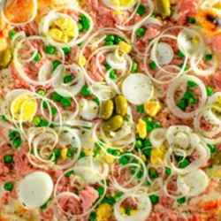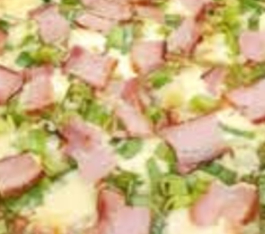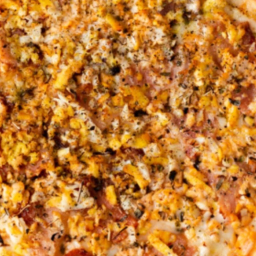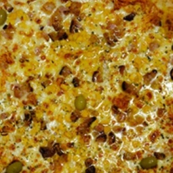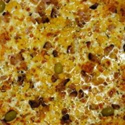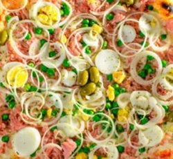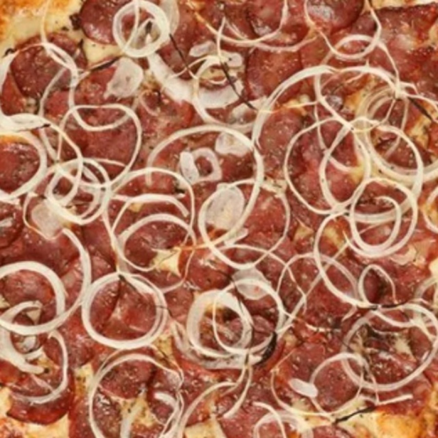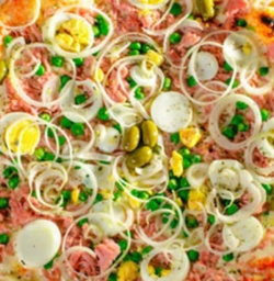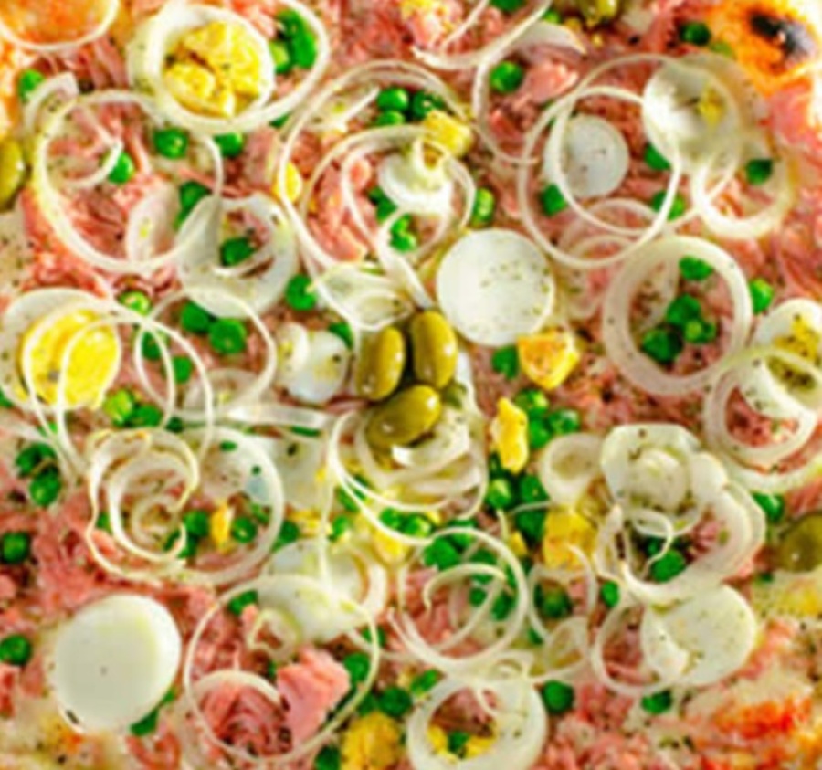 molho especial, muçarela, presunto, calabresa, tomate, cebola, pimentão, milho, ervilha, azeitona, ovo e oréganoPORTUGUESA