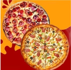Pizza Grande 35cm + 1 Refrigerante de 2L + 1 porte de sorvete de 1,5L e a entrega é grátis!PROMOÇÃO 2 PIZZA GRANDE 30 CM + 3 ESFIHAS + 1 REFRIGERANTE + FRETE GRÁTIS