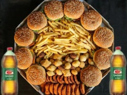 10 x-burguer + 900g de batata frita + 20 anéis de cebola + 50 salgadinhos sortidos + 2 refrigerantes de 2 litrosPURO BACON