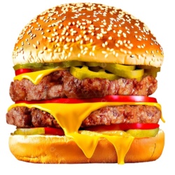 Pão, 2 blend bovino 150g, 2 camadas de cheddar fatia, bastante bacon, 4 cebola empanada e molho da casaEXPLOSÃO DE CHEDDAR