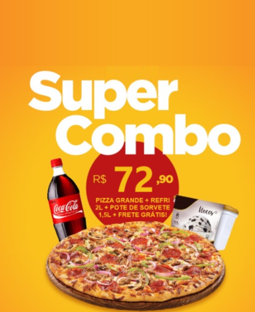 SUPER COMBO PIZZA GRANDE 35CM + REFRI + 1 POTE DE SORVETE + FRETE GRÁTIS